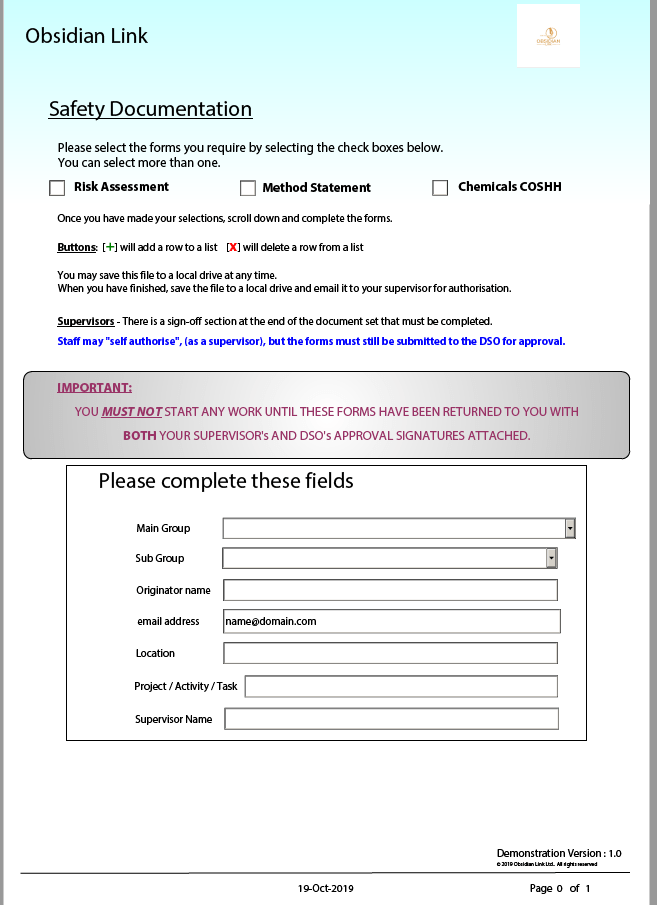 Examples of some of our health and safety forms - More details are available via the links above.